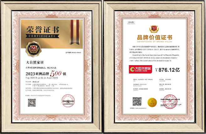 連續(xù)8年!大自然家居問鼎亞洲品牌500強(qiáng),品牌價(jià)值992.61億