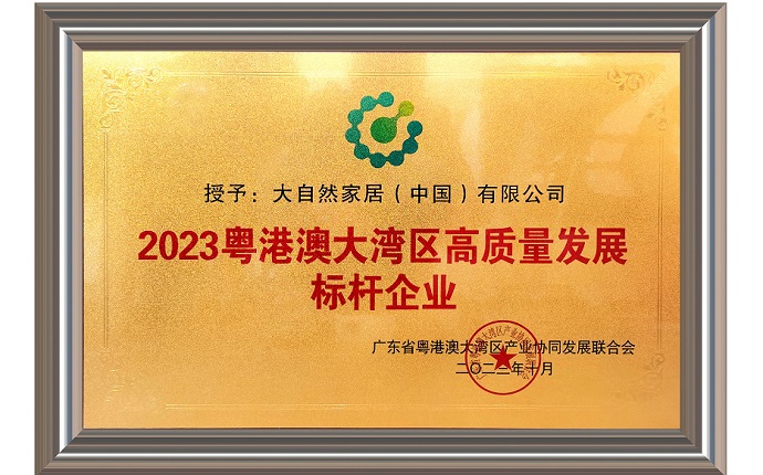大自然家居榮獲“2023粵港澳大灣區(qū)高質量發(fā)展標桿企業(yè)”稱號,助力環(huán)保家居產業(yè)創(chuàng)新發(fā)展