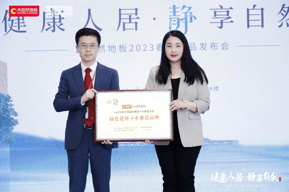 一直以來(lái),大自然地板積極助力綠色健康產(chǎn)品走進(jìn)更多的家庭,為中國(guó)健康人居建設(shè)不斷添磚加瓦。發(fā)布會(huì)現(xiàn)場(chǎng),中國(guó)建筑材料流通協(xié)副會(huì)長(zhǎng)馮斯靜表示:大自然家居旗下的強(qiáng)化地板和實(shí)木復(fù)合地板,成功入選由工信部公布的全國(guó)綠色建材產(chǎn)品清單和企業(yè)名錄,其產(chǎn)品質(zhì)量、安全性、環(huán)保性、節(jié)能性、低碳化等指標(biāo)都優(yōu)于常規(guī)產(chǎn)品,因此大自然家居也被中國(guó)建筑材料流通協(xié)會(huì)評(píng)審成為“綠色建材下鄉(xiāng)推薦品牌”,現(xiàn)場(chǎng)特授予此榮譽(yù)獎(jiǎng)牌。
